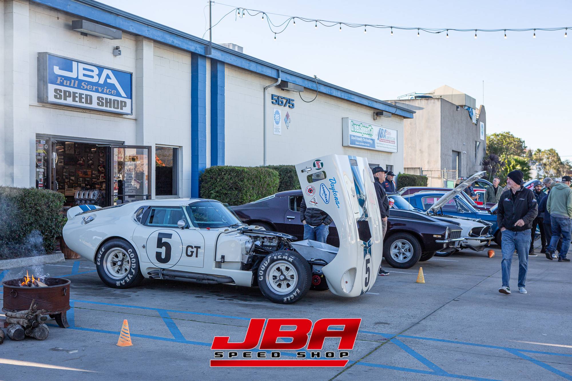 COFFEE & CARS ON THE MESA JANUARY 2026 Another early morning Coffee & Cars on a very dry, crisp and cool Southern California Sunday. The local car community flocked to JBA Speed Shop for Hot Coffee, Warm Donuts and even hotter cars showing what they’re made of. The morning socializing and coffee consumption centered around a new speedy visitor to JBA Speed Shop, a period correct 1965 Shelby Daytona Coupe that was built to very accurately represent the original Daytona Coupe CSX2299. Serial number USR2001 frame & body came from Upstate Super Replicars (USR). Completed using Contemporary Classics molds, 289 c.i. engine stroked to 331 c.i. with Gurney-Westlake heads equipped with 8-stack fuel injection and backed by a 6-speed transmission. The white Daytona gleamed in the morning light against a backdrop of San Diego’s best hot rods, muscle cars and customs.